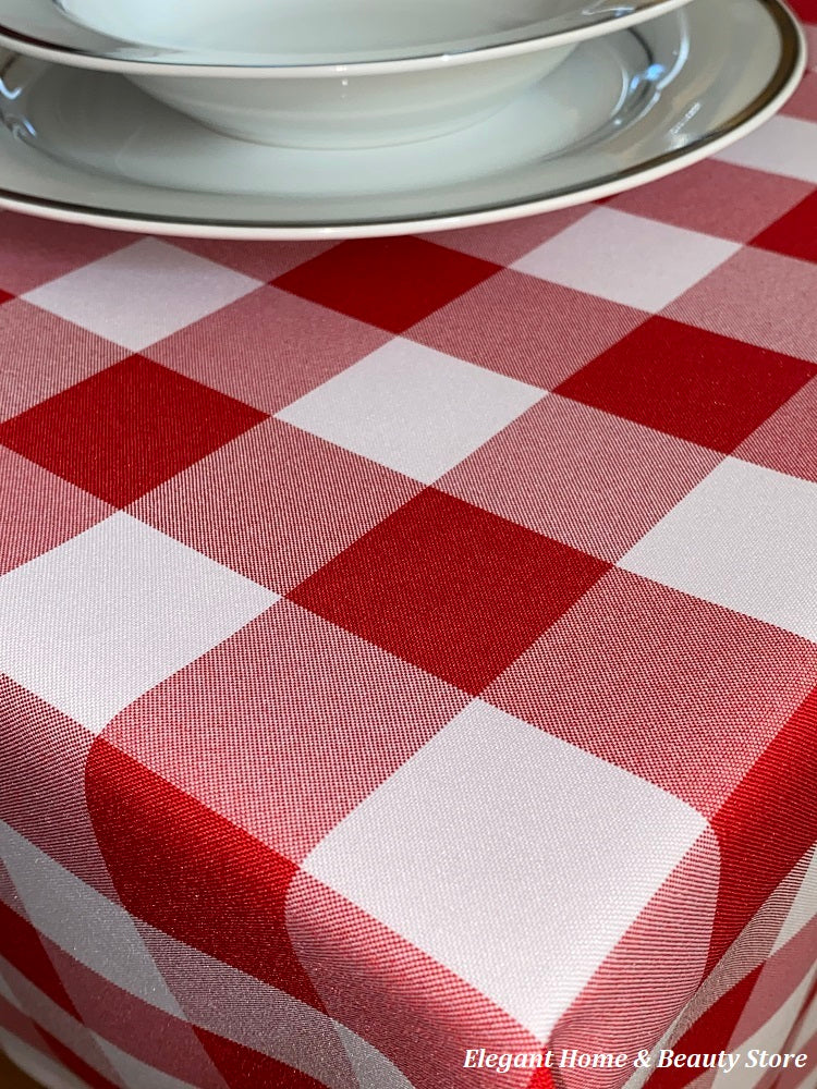 Red Gingham Check Bi-Stretch Polyester Table Cloth
